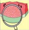 Даже невооружённым глазом, а ещё лучше под лупой можно видеть, что мякоть зрелого арбуза, помидора, яблока состоит из очень мелких крупинок, или зёрнышек. Это клетки - мельчайшие «кирпичики», из которых состоят тела всех живых организмов.