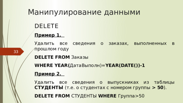 DELETE – удаление записей из таблицы