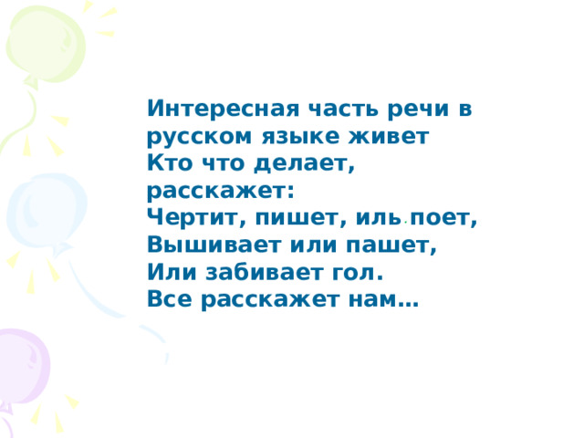 - дать представление о времени глаголов, формировать умение изменять глаголы по временам; повторение и закрепление ранее изученного.