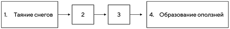 46. Таяние снегов после сильных снегопадов часто становится причиной мощных оползней в горных районах. Объясните, какая связь существует между таянием снегов и образованием оползней. Укажите два звена цепочки причинно-следственных связей.