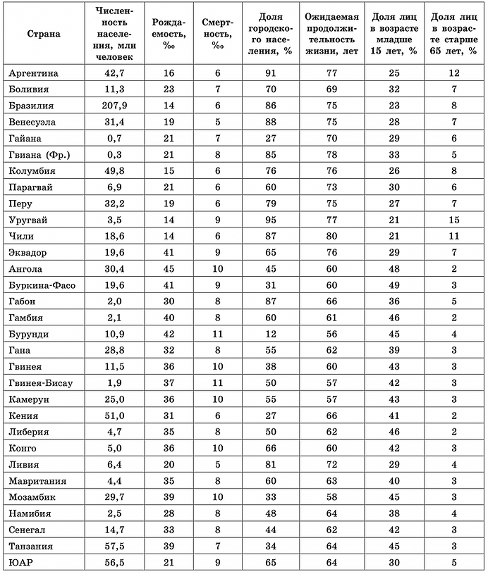 16. Используя данные справочных материалов, сравните долю детей в возрастной структуре населения Мавритании и Колумбии. Укажите две причины более высокой доли детей в возрастной структуре населения Мавритании.