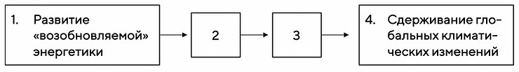 Опишите цепочку связей между развитием производства электроэнергии с помощью энергии солнца, ветра и т.п. и сдерживанием угроз, связанных с глобальным потеплением.
