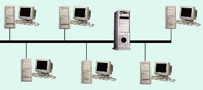 В сети с топологией «шина» все рабочие станции и файл-сервер подключаются к центральному кабелю, называемому шиной.
