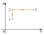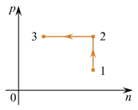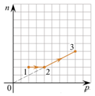 3. Постоянное количество одноатомного идеального газа участвует в процессе, график которого изображен на рисунке в координатах p — n, где p — давление газа, n — его концентрация. Определите, получает газ теплоту или отдает в процессах 1–2 и 2–3. Ответ поясните, опираясь на законы молекулярной физики и термодинамики.