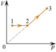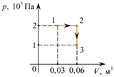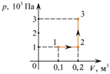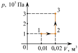 В3. Один моль идеального одноатомного газа участвует в процессе, его график V−р дан ниже (V — объем, p — давление). Определите, получает газ теплоту или отдает в процессах 1–2 и 2–3. Ответ поясните через законы молекулярной физики и термодинамики.