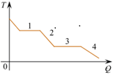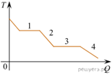 В1 На рисунке показан график изменения температуры Т вещества при постоянном давлении по мере выделения им количества теплоты Q. В начальный момент времени вещество находилось в газообразном состоянии. Какие участки графика соответствуют конденсации пара и остыванию вещества в твердом состоянии?