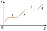 В1 В цилиндре под поршнем находится твердое вещество. Цилиндр поместили в раскаленную печь. На рисунке показан график изменения температуры Т вещества по мере поглощения им количества теплоты Q. Какие участки графика соответствуют плавлению вещества и нагреванию вещества в газообразном состоянии?