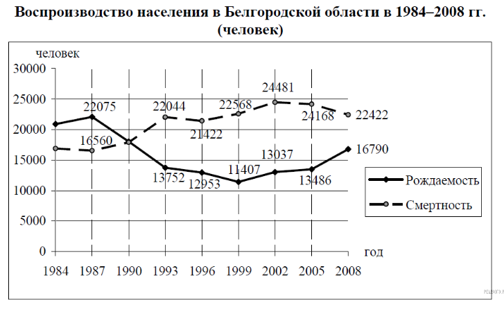 1. В какой из указанных периодов в Белгородской области наблюдалось снижение рождаемости?