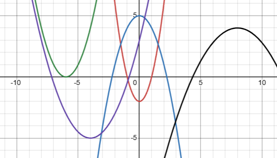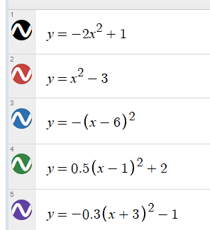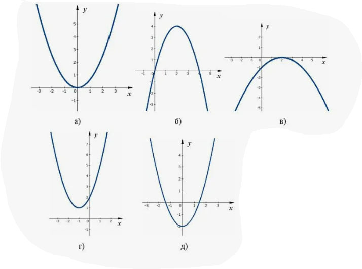 а) у=х2-4; б) у=(х+3)2; в) у=-х2+1; г) у=-(х+4)2-2; д) у=(х-3)2+3.